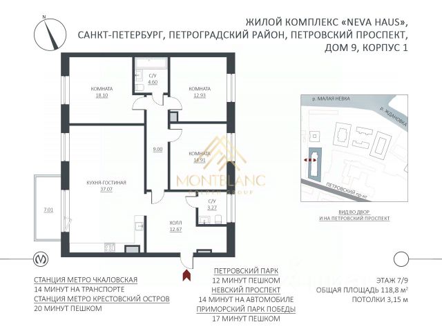 Купить 3-комнатную квартиру рядом со школой рядом с метро Крестовский остров