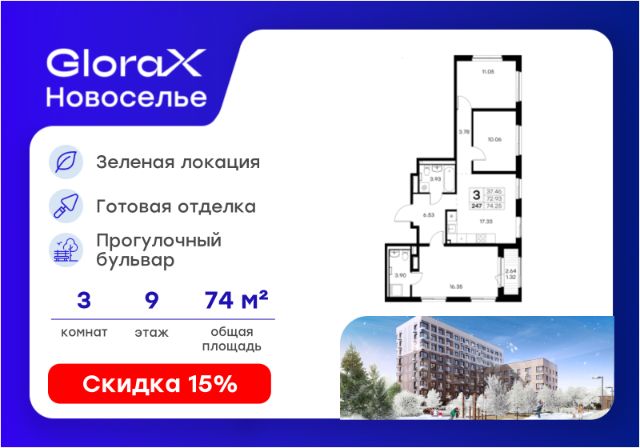 Продаётся 3-комн. квартира площадью 85,1 кв.м на 12 этаже 12 этажного дома (Корпус 4.1, Секция 3) проекта ПИК Таллинский парк. Светлый просторный подъезд на уровне земли, функциональная планировка, большие окна, c отделкой. "Таллинский парк" - проект в Ленинградской области, в районе Новоселье. До станции метро "Проспект Ветеранов" - 15 минут на автомобиле, а до КАД можно доехать всего за 4 минуты. "Таллинский парк" включает 16 жилых домов, детский сад и школу. В проекте появится центральный сквер с обильным озеленением, а через весь квартал протянутся широкие пешеходные бульвары. В зелёных дворах-парках будут оборудованы современные детские и спортивные площадки, обустроены места для отдыха. На первых этажах разместятся магазины, кафе и другие сервисы. Проектом предусмотрены персональные кладовые помещения - это доступный, экономичный и удобный способ хранения сезонных и крупногабаритных вещей. Освободите свою квартиру для полноценной жизни. Район Новоселье активно развивается в городском формате: здесь уже работают детские сады, школа и магазины. Для любителей зимних видов спорта открыта круглосуточная ледовая арена Ice Rink. За покупками и развлечениями также можно быстро доехать: 10 минут - и вы в Аутлете Fashion House Таллинское, гипермаркетах Лента, Леруа Мерлен и Окей. В 10 минутах на автомобиле находится Финский залив, на берегу которого расположились объекты культурного наследия. Рядом - Константиновский парк с отреставрированным дворцом, а чуть дальше расположена усадьба Знаменка. В великолепном Петергофе вы будете уже через 20 минут. Артикул 1026657 (Застройщик ООО "СПЕЦИАЛИЗИРОВАННЫЙ ЗА СТРОЙЩИК "СТРОЙ-ЭКСПЕРТ ") [cn_sbp_1806999]