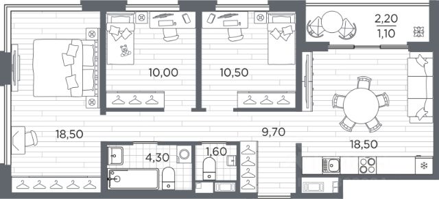 • ✅ Минимальная площадь: 42,7 м²