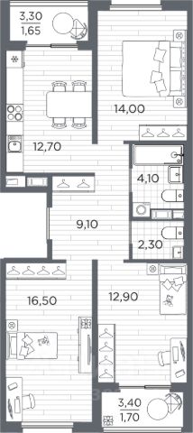 3 комнатная квартира , 10 минут пешком от м. Московская