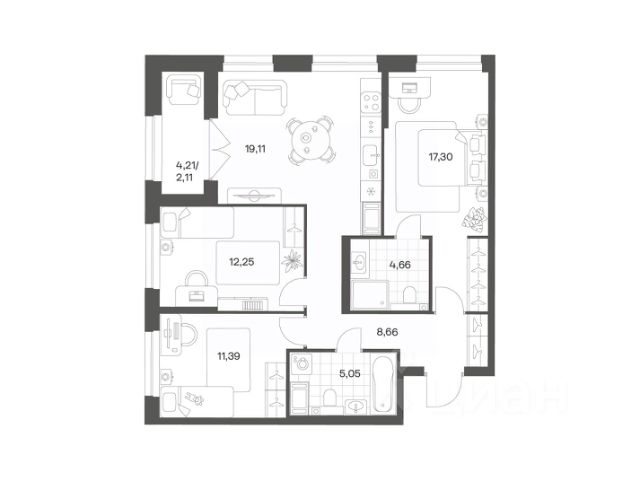Продается квартира площадью 78.85 м² на 19 этаже 1 секции в Речной квартал от компании ГК "ТРЕСТ". Площадь кухни 18.24 м². Семейный жилой комплекс комфорт-класса "Речной квартал" от Группы компаний "ТРЕСТ" расположен в Невском районе Петербурга на пересечении Октябрьской набережной и Русановской улицы. Первая очередь квартала состоит из трёх корпусов, расположенных лучеобразно, чтобы максимально использовать естественное освещение и обеспечить видовые точки на локацию. Проект выделяется современными архитектурными решениями и дизайном. Концепция развития и благоустройства придомовой территории разделена на зоны отдыха, досуга и игровые площадки с учетом возраста и потребностей детей и взрослых. Квартал рассчитан на семейных покупателей, поэтому здесь нет студий: только одно-, двух- и трёхкомнатные квартиры. В проекте представлены квартиры с кухнями-гостиными, мастер-спальнями, гардеробными и кладовыми. "Речной квартал" - современный жилой комплекс с разнообразным благоустройством придомовой территории, просторными европланировками, закрытой охраняемой территорией и подземными паркингами. На территории комплекса уже функционирует детский сад на 110 мест. Также в квартале будет построена общеобразовательная школа на 475 мест с бассейном и стадионом. Открытие школы запланировано на 2029 год. Квартиры в ЖК "Речной квартал" можно приобрести с готовой отделкой от застройщика. Для покупателей квартир предусмотрено два варианта чистовой отделки "Ваниль" и "Шоколад". Чистовая отделка в квартирах ЖК "Речной квартал" предполагает монтаж натяжных потолков, укладку ламината, оклейку стен обоями под покраску, установку светильников и межкомнатных дверей. При отделке новой квартиры применяются качественные, натуральные и экологичные материалы, монтируется стильная импортная сантехника европейских брендов. В объявлении указана стоимость квартиры при 100% оплате. При других формах оплаты - базовую стоимость квартиры уточняейте на официальном сайте компании или у менеджера отдела продаж. Застройщик АО "Специализированный застройщик "Строительный трест".