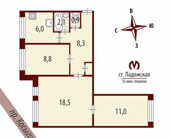 • ✓ В базе Циан 2 3-комнатных квартир возле школы на проспекте Косыгина в Санкт-Петербурге