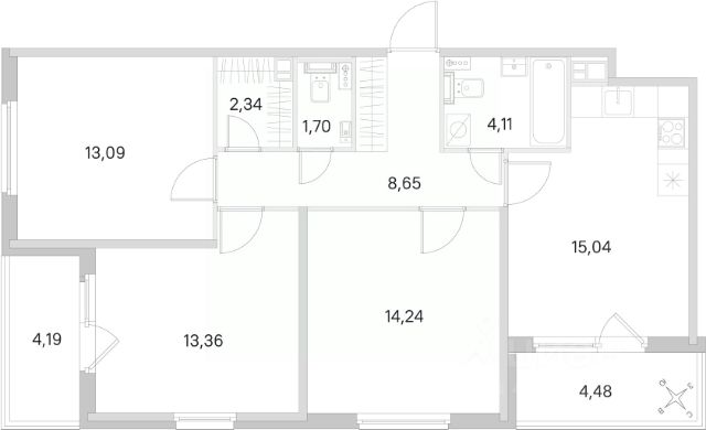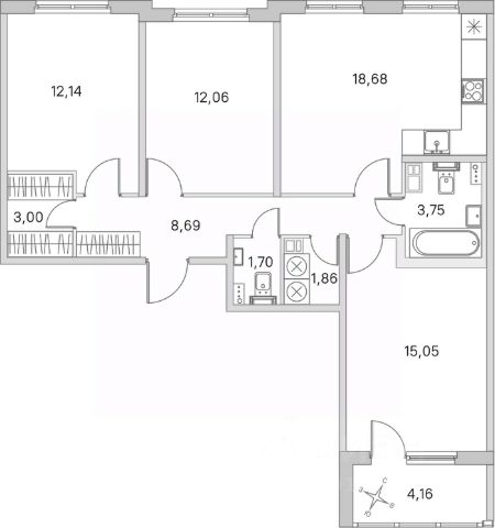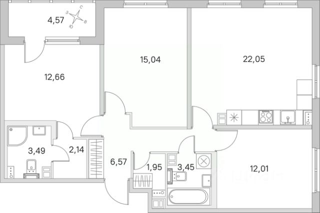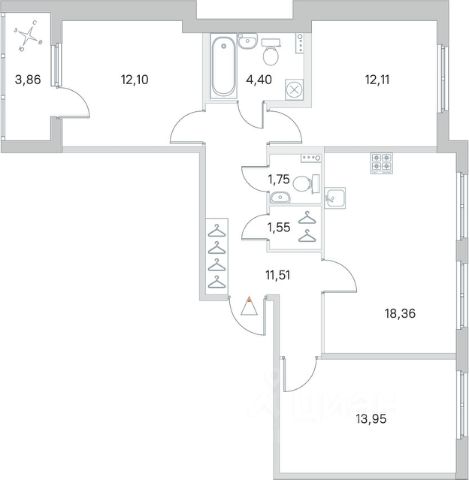 - Мастер-спальня 12,49 с гардеробной 7,95 и санузлом 4,76