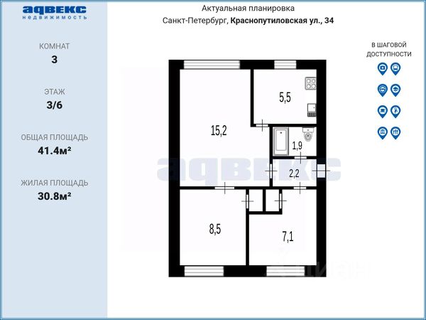 В прямой продаже 3-х комнатная квартира у метро Улица Дыбенко (всего 12 минут пешком).