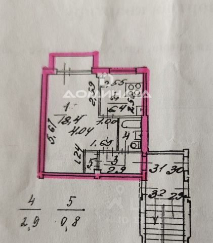 Просторный коридор со встроенным шкафом, санузел, лоджия.