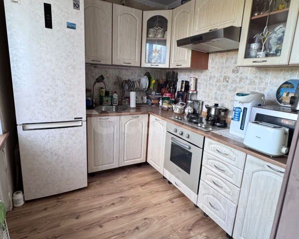 - Кухонный гарнитур из натурального массива со встроенной техникой, шкаф-купе и прихожая остаются новым хозяевам.