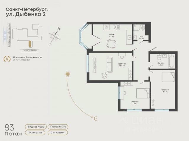 Квартира с видом на миллион долларов! Любите захватывающий вид, эксклюзивное планировочное решение и метро в двух шагах от дома, тогда все дороги ведут к нам! Это - единственное предложение! Выполнен качественный косметический ремонт, что позволяет вам сразу заехать и жить, без дополнительных вложений. Грамотное пространство квартиры на три стороны создает ощущение уюта и комфорта. Просторная прихожая с транзитной зоной, квадратные комнаты, большая гостиная с застекленной лоджией, открытая кухня, где предусмотрено максимальное удобство расположения техники и большое количество систем хранения - все это позволяет создать различные сценарии жизни с открыточным видом на город. В квартире установлены: качественные стеклопакеты, новые радиаторы и счетчики на воду, современные смесители, натяжные потолки, ламинат повышенной износостойкости, надежная входная дверь. Ванная комната и туалет, полностью выложены кафелем. Дом в отличном состоянии, в котором царит атмосфера добрососедства, что обеспечивает комфортное проживание для всех. Теплый с хорошей шумоизоляцией, чистой парадной и новыми лифтами. Благоустроенный двор с детскими площадками, зонами отдыха, променадными улочками и гостевыми парковками. Рядом с домом множество магазинов, кафе, банков, аптек, в доме расположена библиотека. В шаговой доступности две школы, лицей, гимназия, четыре детских сада. Через дорогу - Ледовый дворец, хоккейный город СКА, Яблоновский сад с велодорожками и зонами для занятий спортом, чуть дальше - парк Есенина. Отличная транспортная доступность, удобный выезд на КАД, разнообразный общественный транспорт до метро Дыбенко, Ладожская, Ломоносовская. До центра города всего 15 минут. Квартира продается со всей мебелью и техникой, без обременений и подходит для покупки в ипотеку. Все документы готовы к сделке, что гарантирует быстрый и безопасный процесс приобретения жилья. Не упустите возможность стать обладателем этой замечательной квартиры! Записывайтесь на просмотр и убедитесь в её преимуществах сами. Купить 3-комнатную квартиру (вторичка) в районе Невский в Санкт-Петербурге.