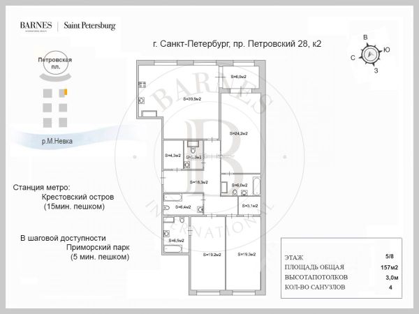 Арт. 133439745 В самом сердце одного из самых престижных и зелёных районов Петербурга — у Лопухинского сада и Каменного острова, на набережной Малой Невки — расположился доходный дом 1913 года (отреставрирован в 1999г), созданный архитекторами Яковлевым и Заозерским. Это место, где история, архитектура и природа соединяются в гармоничное пространство для жизни. Площадь квартиры — 96 м², и её планировка продумана до мелочей: просторная прихожая с гардеробной зоной, светлая кухня-столовая, плавно переходящая в уютную гостиную, а также две изолированные спальни. Особый шарм одной из спален придаёт восстановленная историческая печь с действующим дымоходом. Окна выходят на две стороны: в два тихих двора, в одном из них зелёный сквер с детской площадкой, что обеспечивает редкое сочетание уединения и спокойствия. Высокие потолки 3,4 метра и большие деревянные окна наполняют квартиру воздухом и естественным светом в течении всего дня, подчеркивая её архитектурную эстетику. В квартире выполнен качественный дизайнерский ремонт с использованием натуральных материалов: мрамор в отделке подоконников, кухни и санузла, паркетная доска на полу. Пространство полностью укомплектовано мебелью и премиальной техникой от известных брендов, таких как Kuppersbusch, Miele и Duravit — можно заезжать и сразу жить с комфортом. Квартира находится на 4 этаже из 6, в доме установлен новый лифт, парадная ухоженная и чистая, а атмосфера в доме спокойная и респектабельная — без коммунальных квартир и с достойным окружением соседей. В закрытом дворе организована парковка, и за квартирой закреплено машино-место — редкое и ценное преимущество В шаговой доступности — живописные прогулочные маршруты: Лопухинский сад, набережные и Каменный остров. До метро "Петроградская" можно дойти пешком за считанные минуты. В 5 минутах пешком на ул. Академика Павлова расположены торговый центр, магазины, кафе, рестораны, офисные пространства, студии йоги. В ближайшем окружении 5 школ, 13 детских садов, 6 поликлиник и больниц. Квартира полностью готова к продаже: без обременений, с прозрачной историей и готовыми документами. Это редкое предложение для тех, кто ценит качество, атмосферу и престиж локации. Фасад дома — изысканный и выразительный, окружение формирует однородная и благополучная среда. Продается 3-комнатная квартира на вторичном рынке в районе Петроградский в Санкт-Петербурге.