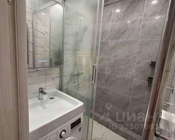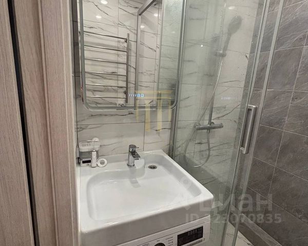 - В ванной комнате кафель, оборудованный душ, электрический полотенцесушитель, принудительная вентиляция, есть раковина и стиральная машина;