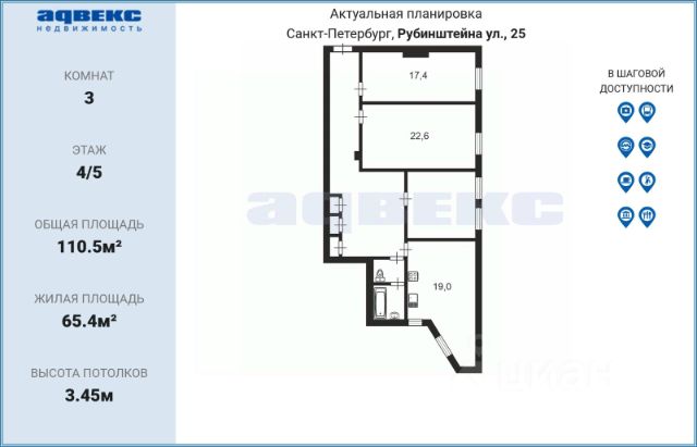 Знаменитая улица Рубинштейна в самом центре Санкт-Петербурга, в 100 метрах от набережной реки Фонтанка и знаменитого Аничкова моста. Дизайн и декор этой замечательной квартиры был заказан в архитектурном бюро Jean Louis Deniot (Париж), дизайн сделан в стиле Hausmanienne, декор - венецианская штукатурка с оттенком Pantone, полы - паркетная доска из благородных пород дерева. Действующий камин из мрамора, чудесный видовой балкончик - перспектива улицы Рубинштейна, вид на Невский проспект, на котором можно выпить чашечку кофе, наслаждаясь видами любимого города. Оборудованная всей современной техникой 20-ти метровая кухня с фасадами цвета Тиффани. В квартире был произведен капитальный ремонт с заменой ВСЕХ коммуникаций. Локация квартиры в центре Санкт-Петербурга - а значит все знаковые для города места находятся практически в пешей доступности: музеи, выставки, театры, храмы! Все, что нужно для жизни - магазины, торговые центры, спортивные комплексы, поликлиники, а также самая престижная Гимназия при Русском музее, и Городской дворец творчества юных в Аничковом дворце, и школа олимпийского резерва 1 - разве можно перечислить все, что находится рядом!? Во дворе дома приватная парковка для владельцев квартир, заезд с улицы Рубинштейна и с Владимирского проспекта. Удобная транспортная доступность - 40 минут - и вы в Пулково даже во время пробок, 5 мин. пешком - и вы у Московского вокзала. В квартире один взрослый собственник, зарегистрированы только члены семьи собственника. Все документы к сделке готовы - гарантируем быстрый выход на сделку! Продам 3-комнатную квартиру (вторичка) на улице Рубинштейна в Санкт-Петербурге.