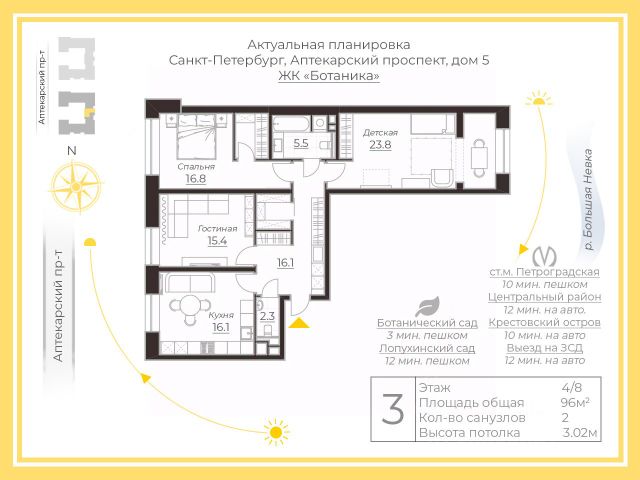 Арт. 115160228 Петербург славится особой атмосферой, переплетением науки и искусства. Один из уголков, хранящих дух творческих и научных открытий, - это Аптекарский проспект в Петроградском районе. Здесь жили учёные и художники, оставившие заметный след в жизни города. Особенно примечателен на Аптекарском проспекте дом 5, где некогда находилась первая крупная городская аптека - Главный запасный аптечный магазин. Здесь, в здании образца классицизма, начиналась отечественная фармацевтика и проводились важные исследования. Рядом располагается знаменитый Ботанический сад Петра I, придающий району особое очарование. Главный аптечный магазин давно снесли, но на его месте построен жилой комплекс "Botanica", в котором бережно сохранена память о прошлом. Его архитектура и название отражают уважение к истории района. Здесь ценят гармонию природы и человеческого гения, сочетая исторические корни с комфортом современности. Живя в "Вotanica", можно ежедневно погружаться в историю, прогуливаться вдоль ботанического сада, дышать особым воздухом, пропитанным историей. ЖК "Botanica" - проект бизнес-класса, обладающий преимуществами современного жилья: качественная отделка мест общего пользования и фасадов с использованием натуральных отделочных материалов - камня и кирпича ручной формовки. Дом сдан в 2020 году. Практически полностью заселен - нет беспокойства от ремонтных работ соседей. На этаже 2 квартиры. В парадной 2 лифта KONE - грузовой и пассажирский, спускающиеся в подземный паркинг. Охраняемая закрытая территория и видеонаблюдение, без барьерная среда - удобство для передвижения с колясками, дворы без машин, 3-ступенчатая очистка воды и многое другое. Высокий 8 этаж с видом на панораму города. Окна по сторонам света обращены на восток и на запад. Есть парковочное место в подземном паркинге прямо рядом с лифтом. Прямая продажа, полная стоимость в договоре, без обременений и зарегистрированных лиц. Ключи у брокера. Оперативные просмотры. Звоните! Предлагаем ПРЕМИАЛЬНОЕ обслуживание для требовательных клиентов. Оперативно организуем просмотр, предоставим полную информацию по объекту. 20 лет работы с требовательными клиентами подготовили нас к решению ВАШИХ сложных задач. Будем рады знакомству! Ул. Рубинштейна, д.8.