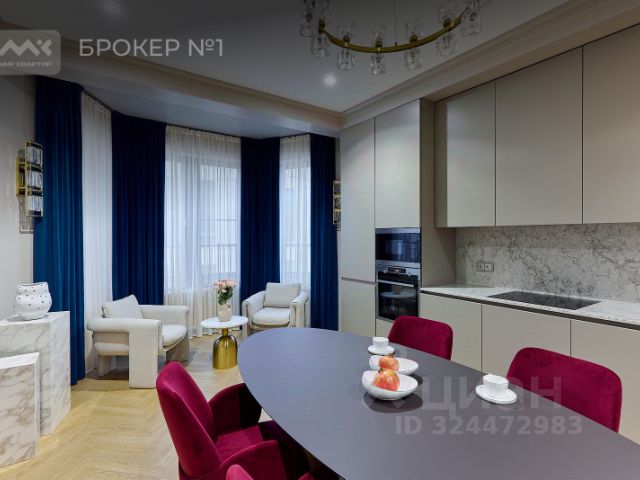 Просторная кухня-столовая 22 метра с эркером полностью укомплектована мебелью и бытовой техникой: Bosch, AEG, Liebherr; 2 сан узла с ванной и душевой, постирочная со встроенной системой стиральной и сушильной машинами, гардеробная с наполнением системы хранения для крупногабаритных вещей и одежды, 3 отдельные (изолированные) комнаты, одна из них с открытым балконом, большой холл в 21.5 метров, где встроен большой шкаф, который гармонично инсталлирован под цветовую гамму стен и потока.