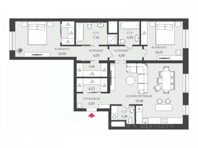 К продаже предлагается изысканная квартира площадью 109 кв. м с двумя спальнями, 3 санузлами и просторной кухней-гостиной, оформленной с безупречным вкусом. Высококачественный ремонт дополнен продвинутой инженерией: приточно-вытяжная вентиляция, индивидуальное кондиционирование в каждой комнате, многоступенчатая система очистки воды. Мастер-спальня с элегантной гардеробной и роскошным санузлом открывает вид на благоустроенный внутренний двор. Окна детской или кабинета обращены к живописной реке Ждановка. Дом отличается исключительными характеристиками: панорамные окна премиум-класса Reynaers Aluminium, потолки высотой 3,1 м, индивидуальная вентиляционная система, трехступенчатая очистка воды, тепловой пункт в каждой квартире, бесшумные лифты Kone с доступом из подземного паркинга, безопасная детская игровая комната с видеонаблюдением, а также зоны для хранения велосипедов и колясок. "Леонтьевский Мыс" воплощение роскоши и комфорта в уникальной локации, всего в 5 минутах ходьбы от Крестовского острова, на мысу, окруженном реками Ждановка и Малая Невка, в 8 минутах от Невского проспекта. Живописное расположение сочетает панорамные виды, чистый воздух и уединение, редкое для центра Петербурга. 600 метров благоустроенной набережной с променадом созданы для прогулок и спорта. Проект разработан петербургскими архитекторами совместно со всемирно известной студией Yoo, гармонично соединяя современные тренды, передовые инженерные решения и адаптацию к климату города. Инфраструктура комплекса продумана до мелочей: консьерж-сервис, многоуровневая охрана, круглосуточный диспетчер, уютный внутренний двор с плетеной мебелью, международный детский сад, школы, развивающие центры, салон красоты, дизайнерские лобби с бильярдом, переговорной и игровой комнатами, трехуровневый паркинг на 700+ мест, а также рестораны и кафе с доставкой еды в квартиры. Продается 3-комнатная квартира на вторичном рынке в Санкт-Петербурге.