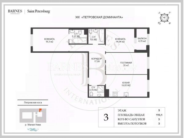 Современная квартира с дизайнерским качественным ремонтом в новом ЖК бизнес-класса "The Оne". Квартира расположена на 8 этаже, окна выходят на солнечные стороны, светлая, общей площадью 101,9 кв.м.