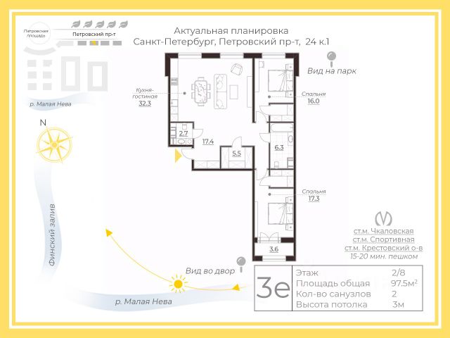 Арт. 113041543 Предлагается к покупке видовая евро трехкомнатная квартира в престижном жилом комплексе на Петровском острове. Квартира имеет прямой вид на Парк Ветеранов сцены из большой кухни-гостиной и второй спальни. В окнах только кроны деревьев. Первая мастер-спальня смотрит на юг, в тихий закрытый двор. Отличительные характеристики: Вид на парк Абсолютно новый дизайн-ремонт Дорогостоящие материалы и оснащение Большие панорамные окна Кухня-гостиная на два окна 32 кв.м. Две спальни Два санузла (один ванной, второй с душем) + постирочная Две гардеробные Рациональная планировка Высокие потолки Квартира с абсолютно новым ремонтом по дизайн-проекту, никто не проживал. Дорогостоящие натуральные материалы - мрамор, шпон, керамогранит, паркет. Система умного дома, кондиционирование, датчики протечки воды, мастер-свет, множество сценариев освещения. . Квартира полностью оснащена мебелью и техникой - Miele, Liebher, Elica, Asco (кофе-машина, винный шкаф, два холодильника, варочная панель, вытяжка, духовой шкаф, посудомоечная машина, стиральная и сушильная машины, кондиционеры. Новый стильный дом со своей набережной и сквером. Круглосуточная охрана, видеонаблюдение, консьерж-сервис. Многоступенчатая система очистки воды. Подземный паркинг. Сегодня Петровский остров не нуждается в представлении. Лучшие парки в пешей доступности. Исторический и деловой центр в 15 минутах на авто. На острове есть 5 муниципальных детских садов, современная муниципальная школа с двумя бассейнами. Открылась новая сцена театра ЛДМ. Кофейни, винные бутики, салоны красоты и все необходимое для комфортной жизни семьи не выезжая с острова. Быстрый выезд на ЗСД. Самая стильная квартира среди всех конкурентов, звоните! Продам 3-комнатную квартиру (вторичка) в жк Петровский квартал на воде в Санкт-Петербурге.