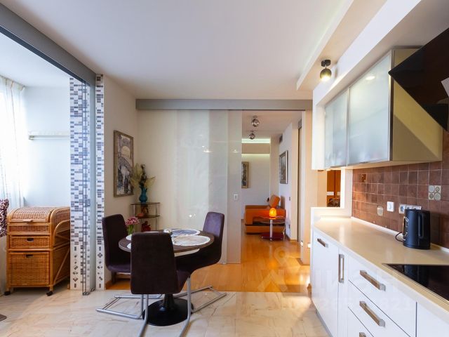 Дизайнерский ремонт. Установлена центральная система вентиляции. Все материалы импорт и качество. Плитка Италии, сантехника Франция и Германия, бытовая техника Германии, мебель Италия и Германия, пол натуральный паркет. На кухне стеклянные двери из пескоструя, привезены из Италии. Подоконники из натурального камня. Окна эркерные, отделка дерево. Стены: дизайнерская штукатурка, в комнатах вставки из римских обоев. Многие элементы дизайна сделаны на заказ. Есть потолочная подсветка. Электрика интересная, можно играть светом) Шкафы встроенные, вместительные. Есть скрытый сейф в квартире. Аквариум 500 л с экзотическими рыбами, вечером красиво работает подсветка, автокормушка, естественное увлажнение квартиры. Кухня, коридор и санузлы с подогревом пола. Стиральная машина Mile стоит в подсобном помещении с дверью, там же есть полки для хранения белья, есть свет. Ремонт делали для себя, один собственник, никогда не сдавалась.