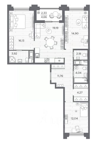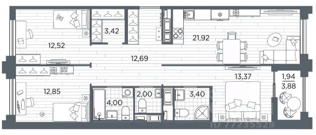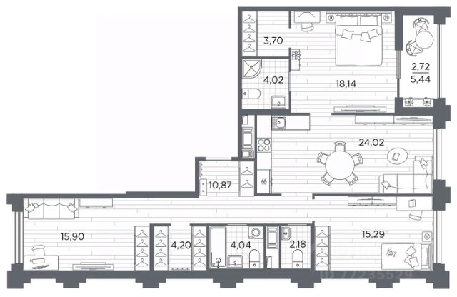 Трехкомнатная квартира в Клубный квартал "Ассамблея" на 4 этаже. Квартира без отделки, после получения ключей можно делать ремонт. Общая площадь: 105.08 кв.м., жилая: 49.33 кв.м., площадь просторной кухни-столовой: 24.02 кв.м. Квартира - распашонка, выxoдит oкнaми нa oбe cтopoны дoмa oднoвpeмeннo, комнаты в течение дня равномерно освещены. В квартире одна лоджия, два совмещенных и один раздельный санузел. Высота потолков 3.0 м. Дом монолитный, черырехподъездный, высотой 12 этажей. Квартира находится в 4-й секции в корпусе 5. На этаже 10 квартир. В подъезде 1 пассажирский и 1 грузовой лифт. Окончание строительства - 3 квартал 2028 года. Оформление сделки по договору долевого участия. В шаговой доступности от жилого комплекса находятся станции метро (расстояние по прямой): "Горный институт" (1.0 км), "Василеостровская" (1.4 км), "Приморская" (1.5 км), также недалеко от этого корпуса расположены станции метро: "Спортивная", "Чкаловская". "Клубный квартал Ассамблея" — проект бизнес-класса на Васильевском острове, в самом сердце исторического Петербурга. Комплекс состоит из пяти корпусов переменной этажности — от 7 до 12 этажей — с выразительной архитектурой в стиле неомодернизма: светлый клинкер, панорамное остекление, просторное лобби с потолками высотой почти 8 метров. Потолки — до 3,2 метров. Подземный паркинг на 667 машиномест. Комфорт и инфраструктура Проект ориентирован на комфортную городскую жизнь. В закрытом дворе — ландшафтное озеленение, современные детские и спортивные площадки. Внутренний клуб для резидентов включает коворкинг, переговорные, кинозал, фитнес и бьюти-зону. IP-домофония с просмотром камер видеонаблюдения, дистанционное открывание дверей и доступа на территорию и в парадную со смартфона и планшета, просмотр показаний счетчиков, приложение для жителей PSK Home. Локация Расположение на Васильевском острове — сильная сторона проекта. До четырех станций метро ("Горный институт", "Василеостровская", "Спортивная", "Приморская") — 515 минут пешком. В шаговой доступности — зелёные зоны, культурные учреждения, в том числе сад "Василеостровец" и ДК имени Кирова. Основные магистрали Большой, Средний и Малый проспекты, Наличная и Уральская улицы. Съезд на ЗСД расположен недалеко от станции метро "Приморская", близ береговой линии. Благовещенский и Дворцовый мосты соединяют остров с центром города, а мосты Тучков, Биржевой и Бетанкура — с Петроградской стороной. Застройщик Группа компаний ПСК является одной из ведущих девелоперских компаний Санкт Петербурга. На протяжении 18 лет она возводит в Северной столице качественное жилье премиум, бизнес и комфорт-класса, социальные объекты школы и детские сады, апарт-отели и торговые центры. Является шестикратным обладателем золотого знака "Надежный застройщик России". #zmb9EA