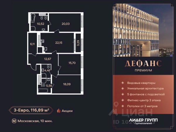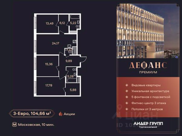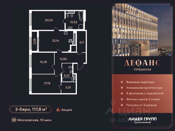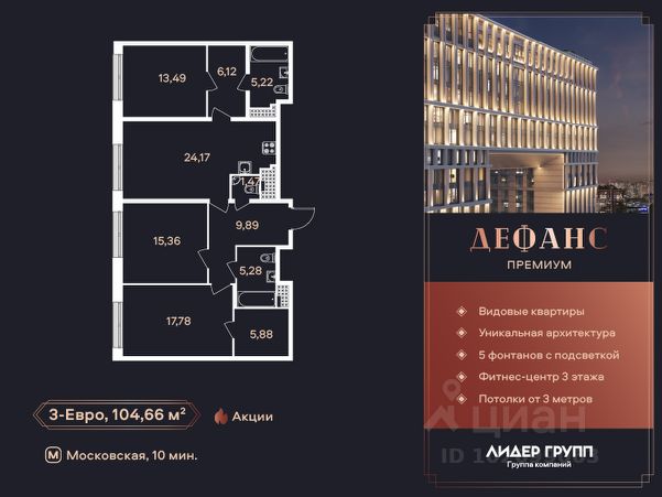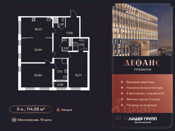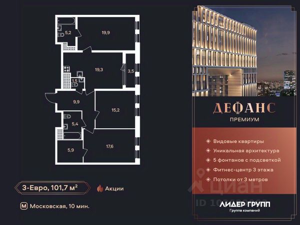 ЖК "Дефанс Премиум". Строительство завершено. Дом получил заключение о соответствии и готовится к вводу! Это проект авторской архитектуры с уникальными форматами квартир в 10 минутах ходьбы от станции метро "Московская". Дом выполнен в виде двух 23-х этажных арок, основания которых объединены единым внутренним пространством с большой парадной лестницей, променадом и большим фонтанным комплексом с подсветкой. В составе проекта построен большой фитнес-центр с бассейнами и зоной СПА. Часть квартир отделена от остальных жилых этажей специальным техническим этажом — это снимает все ограничения по перепланировке. Для части квартир предусмотрены индивидуальные входные группы и дополнительные лифты премиального немецкого бренда Tyssen Krupp (TKE). Фасады, облицованные испанской керамикой и алюминиевые панорамные окна с энергоэффективными стеклами AGС Energy подчеркивают высокий статус дома. На квартиры ЗПИФ и переуступки семейная ипотека не распространяется!