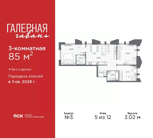 3-комн. квартира в ЖК "Галерная гавань" на 5 этаже. Квартира без отделки, новый собственник может сделать ремонт по индивидуальному дизайн-проекту. Общая площадь: 73.88 кв.м., жилая: 41.26 кв.м., площадь просторной кухни-столовой: 13.95 кв.м. Квартира угловая, идеально подойдет любителям тишины и панорамных видов. В квартире два совмещенных санузла. Высота потолков 3.02 м. Дом монолитный, трехподъездный, высотой 12 этажей. Квартира находится в 3-й секции в корпусе 1. На этаже 7 квартир. В подъезде 1 пассажирский и 1 грузовой лифт. Начало строительства - 4 квартал 2025 года. Окончание строительства - 3 квартал 2028 года. Оформление сделки по договору долевого участия. В шаговой доступности от дома находится станция метро (расстояние по прямой) "Приморская" (1.6 км), также недалеко от этого корпуса находятся станции метро: "Горный институт", "Василеостровская", "Спортивная", "Крестовский остров". "Галерная гавань" — это жилой комплекс бизнес-класса в исторической части Васильевского острова — на берегу Галерной гавани, ведущей свою историю с 1724 года. В свою очередь, исторический Васильевский остров это университеты, школы, детские сады, поликлиники, несколько станций метро и прочая инфраструктура без проблем с транспортной доступностью. В "Галерной гавани" шесть корпусов на 813 квартир, площадью от 29,5 до 134 кв.м. Высота потолков 3 м. Два корпуса из шести всего на 20 квартир. На верхних этажах расположатся квартиры с большими террасами и панорамным остеклением. Также есть квартиры с французскими балконами и мастер-спальнями. Четыре квартиры из каждых пяти с видами из окон на тихую воду, на старые и новые городские символы. Паркинг займет весь подземный объем квартала, и будет вмещать 606 автомобилей. Фасады "Галерной гавани" выполняются в стиле баварской кирпичной кладки, с акцентами из керамогранита графитового оттенка. Объемы задаются ризалитами с художественной подсветкой. Для жителей будет создан комьюнити-клуб с переговорной и библиотекой, кинозалом, кофе-поинтом, детской комнатой с пространством для мастер-классов, фитнес-зоной, а также бьюти-кабинетом. "Галерная гавань" — это также первый в Петербурге жилой комплекс с общественным пространством у воды. ГК "ПСК" восстановит десять исторических зданий, в которых расположатся рестораны, кафе, фитнес-клуб с бассейном, культурное пространство, театр и офисы. При этом набережная будет превращена в пешеходную, в территорию общественного пространства. #ZMflBz