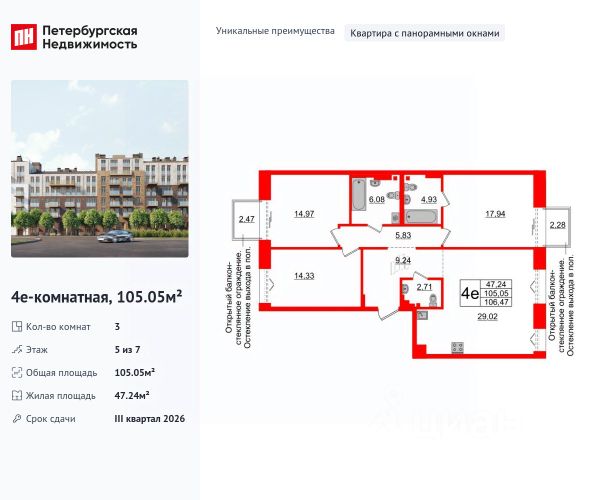 Продается просторная, семейная 3-комнатная квартира от застройщика в жилом комплексе "Империал Клаб" в уютном Василеостровском районе. До метро можно добраться на транспорте всего за 7 минут. Окна от пола до потолка позволят безгранично любоваться видами Петербурга, наполнят комнату солнцем и светом! Уникальная, функциональная европланировка, большая кухня-гостиная 29.43 м², вместительная прихожая 9.17 м². Общая площадь квартиры - 105.62 м², жилая 47.43 м², высота потолка 3 м. Квартира продается c черновой отделкой. Что особенного в ЖК "Империал Клаб"? • Парадные виды на Большую Неву и Английскую набережную • Изысканная архитектура жилого комплекса. • Уникальное благоустройство. • Двухуровневые входные группы. • Панорамные окна, открытые террасы, вантовые балконы. • Двухэтажные сити-виллы с патио, квартиры с возможностью обустройства камина и зимнего сада с растениями. • Просторный фитнес-центр с бассейном и спа-зоной на первом этаже . • Премиальный сервис: заказ такси,выгул собак, уборка, доставка вещей .