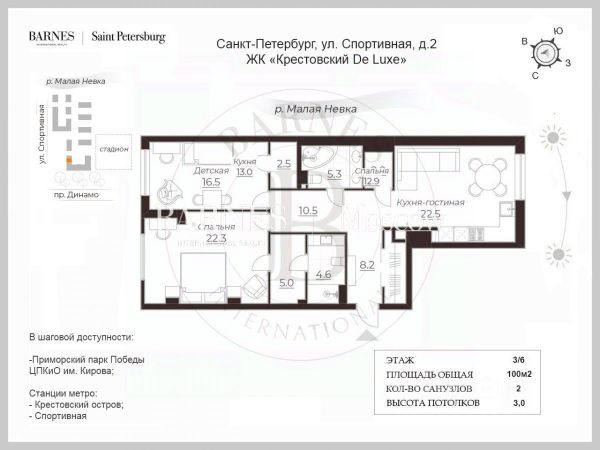 Вашему вниманию предлагается квартира с тремя спальнями, расположенная в одном из самых востребованных жилых комплексов Крестовского острова. Квартира общей площадью 137,4 кв. м лаконично и практично организована. В квартире очень гармонично расположились 3 спальни, одна из которых полноценная мастер-спальня, 3 гардеробных, 2 санузла, 2 лоджии, постирочная, большое количество мест для хранения, а также кухня-гостиная площадью в 26 кв. м. Стильный, современный, но при этом без излишеств, дизайнерский ремонт, который создает только приятные впечатления. В отделке использовались натуральные и практичные материалы. На стенах мрамор, на полу паркет. Квартира обставлена итальянской мебелью таких именитых брендов, как Poliform, Baxter, Minotti, Poltrona Frau. Техническое оснащение квартиры обеспечивается надежными мировыми производителями: V-ZUG, LIEBHERR. В квартире организовано сценарное освещение таких студий света, как Baxter, Moooi, Flos. Панорамные окна Reynaers с безопасной системой для детей. Премиальная сантехника от итальянского бренда GESSI и VilleroyBoch. Вся плитка PORCELANOSA. Микроклимат квартиры обеспечивается приточно-вытяжной вентиляцией, кондиционированием воздуха, подогревом полов, 12-ступенчатой системой водоочистки. Видеодомофон, охранная система, видеонаблюдение. Вместе с квартирой продаётся 2 парковочных места (входят в стоимость), расположенные в подземном паркинге, расположенные недалеко от лифта. Комплекс имеет благоустроенную территорию порядка 3 Га, с выходом на набережную и граничит со стадионом "Динамо", что делает его особо привлекательным для любителей спорта и активного отдыха. Обслуживание комплекса осуществляет профессиональная управляющая компания. По всему периметру ведется круглосуточное видеонаблюдение, есть контроль доступа. Современное техническое оснащение включает в себя: трехступенчатую систему очистки воды (фильтрация, сорбция, обеззараживание), центральное кондиционирование, автономную газовую котельную, систему пожаротушения. 3-комнатная квартира в ЖК Крестовский de luxe в Санкт-Петербурге.