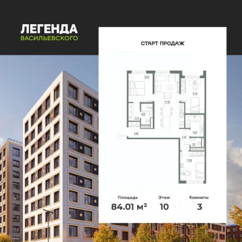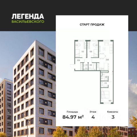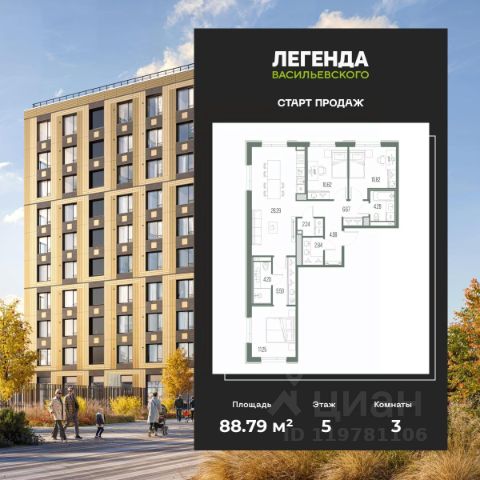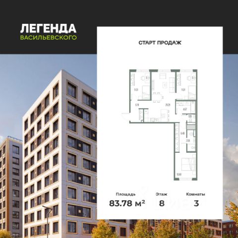 Продается 3-комн. квартира с предчистовой отделкой в ЖК "ЛЕГЕНДА Васильевского" на 6 этаже. Общая площадь: 75.24 кв.м., жилая: 32.54 кв.м., площадь просторной кухни-столовой: 21.68 кв.м. Квартира угловая, окна oбecпeчивaют paвнoмepнoe ocвeщeниe в тeчeниe дня. В квартире один совмещенный и один раздельный санузел. Высота потолков 2.72 м. "ЛЕГЕНДА Васильевского" жилой квартал в минутной доступности от Финского залива, главного креативного хаба Санкт-Петербурга Севкабель Порта и других точек притяжения. Современные инженерные и технические решения, повышающие качество жизни TechnoBox включают в себя: стационарный и удаленный контроль дома, систему вентиляции Air Design - здоровое дыхание без лишнего шума, мультисервисную сеть, объединяющую коммуникационные системы, удаленное управление электроприборами, контроль отопления в каждом помещении, поддерживающий оптимальный температурный баланс во время "холодного" периода", датчики протечки, датчик открытия входной двери. Мультисервисная сеть (МСС) объединяет ключевые слаботочные системы дома, задавая им единый высокий стандарт работы, обеспечивая надёжность их функционирования и управления. Квартира готова к декорированию. Застройщиком сделана шумоизоляция; стены подготовлены для отделки; проведена электрика с учетом рекомендаций по расстановке мебели и бытовой техники; выровнен пол. В каждой квартире установлена взломостойкая входная дверь, окна со специальным термоизолированным алюминиевым профилем. Двор жилого комплекса "ЛЕГЕНДА Васильевского" закрыт. Проект состоит из шести разноформатных корпусов с ритмичными фасадами в духе пост-конструктивизма. Геометрия жилого комплекса состоит из четко простроенных осей, чередующих открытые пространства и объемы корпусов, каждый из которых обладает своим визуальным кодом индивидуальным рисунком фасада и цветовой палитрой. Корпуса образуют периметр с общественными пространствами: площадью с кафе, магазинами и пешеходным променадом с детскими игровыми хабами, местами для спокойного отдыха и workout-зоной. На территории комплекса предусмотрены теплый подземный паркинг и два наземных 4-х этажных паркинга.