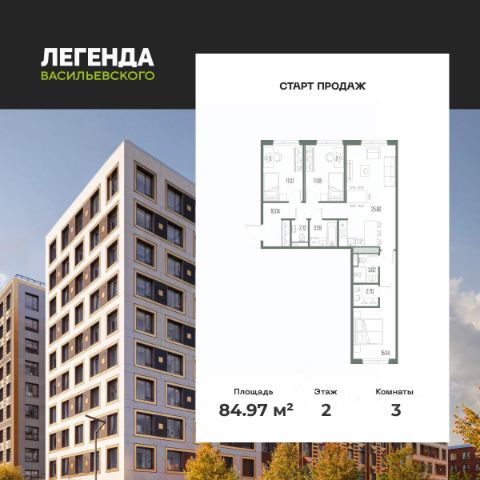 Продается 3-комн. квартира от застройщика с предчистовой отделкой в ЖК "ЛЕГЕНДА Васильевского" на 6 этаже. Общая площадь: 75.24 кв.м., жилая: 32.54 кв.м., площадь просторной кухни-столовой: 21.68 кв.м. Квартира угловая, идеально подойдет любителям тишины и панорамных видов. В квартире один совмещенный и один раздельный санузел. Высота потолков 2.72 м. "ЛЕГЕНДА Васильевского" жилой квартал в минутной доступности от Финского залива, главного креативного хаба Санкт-Петербурга Севкабель Порта и других точек притяжения. Современные инженерные и технические решения, повышающие качество жизни TechnoBox включают в себя: стационарный и удаленный контроль дома, систему вентиляции Air Design - здоровое дыхание без лишнего шума, мультисервисную сеть, объединяющую коммуникационные системы, удаленное управление электроприборами, контроль отопления в каждом помещении, поддерживающий оптимальный температурный баланс во время "холодного" периода", датчики протечки, датчик открытия входной двери. Мультисервисная сеть (МСС) объединяет ключевые слаботочные системы дома, задавая им единый высокий стандарт работы, обеспечивая надёжность их функционирования и управления. Квартира готова к декорированию. Застройщиком сделана шумоизоляция; стены подготовлены для отделки; проведена электрика с учетом рекомендаций по расстановке мебели и бытовой техники; выровнен пол. В каждой квартире установлена взломостойкая входная дверь, окна со специальным термоизолированным алюминиевым профилем. Двор жилого комплекса "ЛЕГЕНДА Васильевского" закрыт. Проект состоит из шести разноформатных корпусов с ритмичными фасадами в духе пост-конструктивизма. Геометрия жилого комплекса состоит из четко простроенных осей, чередующих открытые пространства и объемы корпусов, каждый из которых обладает своим визуальным кодом индивидуальным рисунком фасада и цветовой палитрой. Корпуса образуют периметр с общественными пространствами: площадью с кафе, магазинами и пешеходным променадом с детскими игровыми хабами, местами для спокойного отдыха и workout-зоной. На территории комплекса предусмотрены теплый подземный паркинг и два наземных 4-х этажных паркинга.