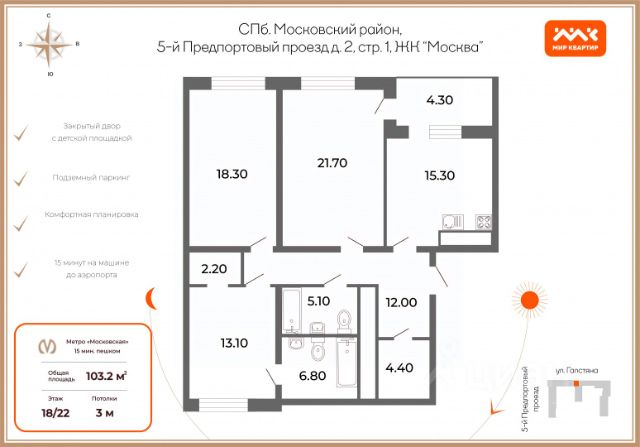 Арт. 106530291 Продаётся уютная квартира мечты для вашей большой семьи! Представляем вашему вниманию просторную квартиру площадью около 100 м² в престижном Московском районе Петербурга — идеальное решение для тех, кто ценит комфорт, удобство расположения и качество жизни! Описание объекта: Просторная трехкомнатная квартира в новостройке премиум-класса. Эргономичная кухня-гостиная, объединённая зона отдыха и готовки, три просторные комнаты для комфортного проживания всей семьей. Два удобных раздельных санузла — забудьте об утренних очередях! Современный качественный ремонт — никаких вложений сразу после покупки. Светлые большие окна выходят одновременно на живописный внутренний двор и захватывающую городскую панораму. Рядом детский парк, две известные школы 544 и 376, продуктовые магазины, пункт выдачи заказов и государственный детский садик — вся инфраструктура буквально под боком! Отличное транспортное сообщение: вблизи станция метро "Московская", международный аэропорт Пулково, скоростная магистраль ЗСД и удобные выездные магистрали. Преимущества приобретения: Квартира принадлежит единственному собственнику, находится в личной собственности более пяти лет — оформление сделки простое и прозрачное. Удобство эксплуатации: предусмотрены дополнительное парковочное пространство (два места), удобный доступ к машине и возможность приобрести собственные машиноместа в подземном паркинге. Во дворе расположены игровые площадки, обеспечивающие досуг детям всех возрастов. Комфортная жизнь в тихом зелёном уголке мегаполиса с прекрасным видом из окон. Ваш идеальный дом ждёт вас здесь! Не упустите шанс создать семейное счастье в одном из лучших районов Северной столицы! Свяжитесь с нами прямо сейчас, и мы организуем показ вашего будущего семейного гнездышка! Продается 3-комнатная квартира в ЖК Москва в Санкт-Петербурге.
