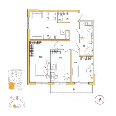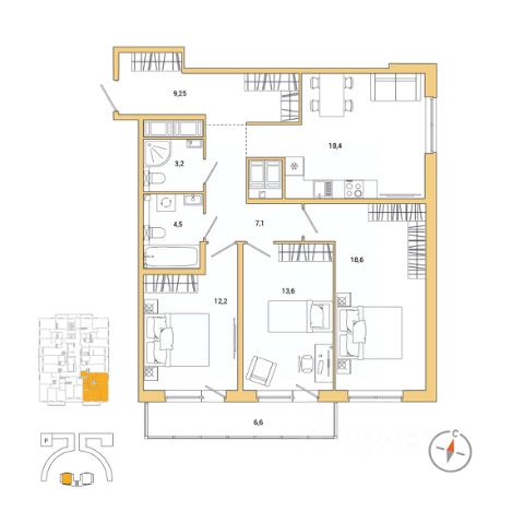 Срочно продаётся 4Е-квартира с тремя спальнями общей площадью 88,03 м2. в Приморском районе Санкт-Петербурга. Квартира расположена в монолитном доме комфорт-класса. Идеальное место для комфортной жизни в окружении лесных массивов. О квартире: - Квартира находится на 6 этаже 7-этажного дома - Общая площадь квартиры 88.03 м2 - Мастер-спальня 15.72 м2 с отдельным санузлом 4.10 м2 и гардеробной - Детские комнаты 11.70 и 11.72 м2 - Просторная кухня-гостиная 20.23 м2 - Совмещённый санузел 3.10 м2 - Застекленный балкон 3.82 м2 PRO дом и район: - Дворы закрыты от проезда машин, для автовладельцев предусмотрены 4 отдельно стоящих паркинга и 6 пристроенных. - Комплекс находится в окружении 3 лесных массивов: Суздальские озера, Шуваловский парк и Юнтоловский заказник - В состав комплекса входит 3 детских сада на 140 мест и школа на 825 мест. - В 10-15 минутах езды находятся сразу 3 станции метро: Парнас, Проспект Просвещения и Озерки - Рядом с комплексом находятся удобные выезды на КАД, Выборгское шоссе, Суздальский проспект и Парашютную улицу - до центра города около 40 минут Прямая продажа, один правообладатель. Не упустите свой шанс! Квартира в наличии, звоните прямо сейчас!