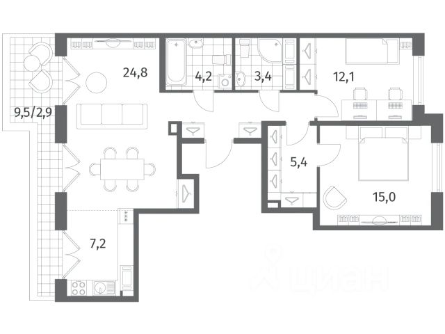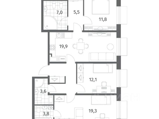 Продается квартира площадью 90.8 м² на 12 этаже 1 секции в Парусная 1 от компании ГК "ТРЕСТ". Площадь кухни 31.7 м². Семейный жилой комплекс бизнес-класса "Парусная 1" от ГК "ТРЕСТ" расположен в исторической части Васильевского острова, рядом с набережной Галерной гавани и Финским заливом в окружении парков и живописных мест для прогулок. Это уникальный квартал с великолепным благоустройством, просторными квартирами, закрытой охраняемой территорией и подземными паркингами. Проект жилого квартала из 12 корпусов, объединенных общим стилобатом, разработан архитектурным бюро "Студия 44". 59% квартир в жилом комплексе семейные двух и трехкомнатные. Архитектура базируется на простоте геометрических форм и пластического разнообразия фасадных решений. Использование контрастного темного и светлого облицовочного кирпича и декоративной штукатурки, поддерживает исторический стиль застройки Васильевского острова. Фасадные решения представлены сложносочиненной системой выступов и смещений. За счет постановки домов в шахматном порядке между ними образуются транзитные пассажи и уютные камерные дворики. Часть квартир на первых этажах обустроена индивидуальными террасами-патио, а на верхних предусмотрены квартиры с просторными открытыми террасами. Во всех квартирах будет установлено панорамное остекление и системы умного дома, высота потолков до 3,2 м. На территории квартала уже ведётся строительство детского сада на 280 мест и средней общеобразовательной школы на 825 учащихся. Кроме того, в шаговой доступности находятся более десяти детских садов и школ, также запланировано строительство школы на 1375 мест в 5 минутах от квартала. Дворы домов проектируются закрытыми и свободными от автомобилей. Проектом предусмотрен двухуровневый паркинг на 721 машиноместо с доступом на лифте, парадным входом и бесконтактной системой въезда с определением гос. номера автомобиля. Внутриквартальная территория приподнята над поверхностью земли на 3,5 м. Образующееся между домами "плато", куда ведут пологие лестницы и пандусы, предоставляет жителям благоустроенное пространство где предусмотрены безопасные игровые и спортивные площадки для детей разного возраста, амфитеатр, а также места для общего досуга и общения жителей. Проектом предусмотрены колясочные, велопарковки, круглосуточное видеонаблюдение. Отсутствие ступенек и крылец обеспечит удобный доступ в парадные для всех категорий граждан. Проект комплексного благоустройства и ландшафтного дизайна выполнен студией DEREVO PARK. Приватные дворы домов объединены общей концепцией в основе которой лежит взаимодействие человека с водой. Здесь появятся водные чаши, водопад, канальцы для сбора дождевой воды, детские зоны для игр, а также малые архитектурный формы. В просторных входных группах с панорамными окнами и высокими потолками будут созданы удобные зоны ожидания для гостей с мягкой мебелью, журнальными столиками и декоративными вазами. Квартиры в ЖК "Парусная 1" можно приобрести с совре