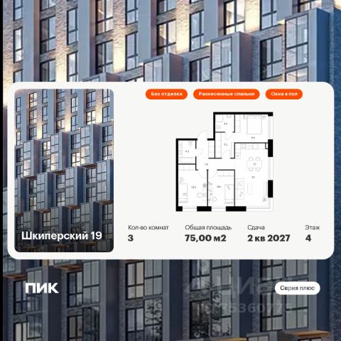 Продаётся 3-комн. квартира площадью 75 кв.м на 4 этаже 12 этажного дома (Корпус 2, Секция 5) проекта ПИК Шкиперский 19. Светлый просторный подъезд на уровне земли, функциональная планировка, большие окна, без отделки. Жилой квартал возводится на Васильевском острове, в пешей доступности от станции метро "Приморская" и с удобным выездом на ЗСД. Здесь будут квартиры с высокими потолками, окнами в пол и великолепным видом на Финский залив. Жилой квартал "Шкиперский 19" возводится в историческом районе Санкт-Петербурга - на Васильевском острове. Здания высотой от 8 до 12 этажей выполнены в природных оттенках, поэтому гармонично вписываются в архитектурный ландшафт Васильевского острова. На первых этажах домов откроются магазины, кафе и полезные сервисы: чтобы сходить за свежей выпечкой к завтраку, можно будет просто спуститься на лифте. Для детей из "Шкиперского 19" на территории квартала откроются школа и детский сад. Парадный вход "Шкиперского 19" - просторное и светлое гранд-лобби в стиле джапанди. В нём будут сочетаться элементы японских и скандинавских традиций дизайна. Помимо зоны ожидания с мягкой мебелью, здесь будет детская комната и гостевой санузел. В парадных предусмотрены комнаты для колясок и лапомойки для собак, тихие и быстрые лифты. Автомобиль можно будет оставить в подземном паркинге, а крупные и сезонные вещи - в индивидуальной кладовой. Доехать от квартала до Невского проспекта можно за 15 минут, до ЗСД - за 12 минут. В 20 минутах ходьбы находится станция метро "Приморская", и в 2030 году планируется открытие станции "Гавань" в 5 минутах от проекта. Проект принадлежит "Серии плюс". В "Серию плюс" входят жилые кварталы с повышенным уровнем комфорта и уникальной архитектурой. В светлых уютных лобби с дизайнерской отделкой предусмотрены колясочная и гостевой санузел. Артикул 977282 (Застройщик ООО "СЗ "Москворецкий дом") [cn_sbp_1805106]