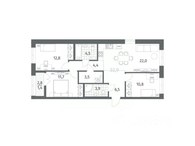 В жилом комплексе "Тридевяткино царство" представлены квартиры с количеством комнат от одной до четырёх (а также квартиры-студии) площадью от 24 кв. метров до 111 кв. метров. Потолки в помещениях имеют высоту 275 см. Все квартиры предлагаются к продаже с полноценной финишной отделкой - со всеми коммуникац