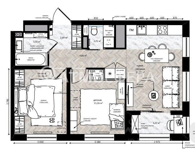 • ✅ Минимальная площадь: 48,4 м²