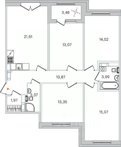 Предлагается к продаже семейная резиденция площадью 159,37 кв.м.Квартиру отличают высокие потолки от 2,9 до 3,8 м, а также совершенно необычные окна высотой 3,7 м. Такая геометрия крыши и окон наполняет квартиру воздухом и светом, а также дает возможность проектирования 2ого уровня для игровой детской зоны или библиотеки. Квартира строго зонирована на приватную и гостевую часть: кухня-столовая площадью 16,41 кв.м объеденяется с роскошной гостиной площадью 50 кв.м с четырьмя панорамными окнами ориентированными на две стороны и выходом на французский балкон. Приватная часть включает в себя три спальни, две ванные комнаты, две гардеробные и постирочную. Высота потолка 3,8м, большие окна, возможно приобретение машиноместа и дополнительной кладовки в подземном паркинге.