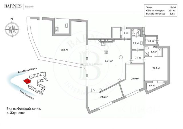 Арт. 131939982 Видовая резиденция площадью 364 кв. м с собственной террасой и индивидуальным лифтом в клубном доме Мальта, входящем в состав комплекса Леонтьевский мыс. Пространство выстроено вокруг главного архитектурного акцента — открытой панорамы на Финский залив и современный силуэт Лахта-центр, которые становятся естественной частью интерьера и меняют восприятие квартиры в течение дня. Резиденция расположена в камерной части комплекса с контролируемым доступом и приватной атмосферой проживания. Архитектура и общественные пространства формируют цельную среду: интерьеры общих зон выполнены по проекту Филипп Старк с использованием выразительных фактур и тщательно подобранных материалов, задающих спокойный и собранный характер дома. Планировочное решение строится вокруг масштабной общественной зоны. Кухня-гостиная площадью 165,3 кв. м рассчитана на разные сценарии жизни — от семейных вечеров до приёма гостей, сохраняя ощущение воздуха и свободного движения внутри пространства. Приватная часть включает четыре изолированные спальни, позволяя комфортно разделить личные зоны членов семьи. Особую роль играет терраса площадью 91.9 кв. м — полноценное продолжение жилого пространства под открытым небом. Здесь формируется отдельный сценарий жизни: утренний кофе с видом на воду, вечерний отдых или камерные встречи на фоне панорамы города и залива. Резиденция оснащена индивидуальным лифтом, обеспечивающим прямой доступ и высокий уровень приватности. Дополнительно возможно приобретение четырёх парковочных мест с кладовыми, что редкость для городских объектов подобного масштаба и упрощает повседневную организацию хранения и перемещений. Комплекс предлагает закрытую охраняемую территорию и собственную набережную для прогулок. Для резидентов доступны консьерж-служба 24/7, бильярдная, переговорные пространства и детский игровой клуб — инфраструктура, позволяющая решать рабочие и семейные задачи, не покидая территорию дома. Внутри комплекса расположены рестораны, пекарня, фитнес-центр, медицинские сервисы и повседневные городские функции. Дополняют окружение парковые пространства Крестовский остров и Каменный остров, находящиеся всего в нескольких минутах езды и формирующие природный баланс городской жизни. Это редкий формат городской резиденции — сочетание значительного метража, приватного доступа, панорамных видов и собственной террасы. Решение для покупателя, который ищет пространство с архитектурным масштабом и возможностью выстроить индивидуальный сценарий жизни внутри одного адреса.