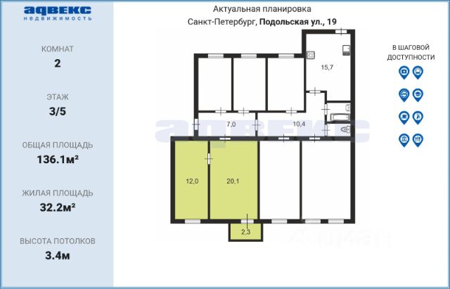 - Простoрная кухня-гостиная (30 кв.м), с выходом на застекленный балкон — отличное место для семейных ужинов и встреч с друзьями