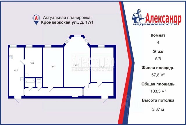 1705836 Прямая продажа квартиры в центре Санкт-Петербурга. До станций метро "Горьковская" и "Петроградская" пешком 7-8 минут. Окна квартиры выходят в просторный двор. Квартира 4-х комнатная. Располагается на 2 этаже, на 1 -коммерческие помещения. Общая площадь квартиры 90 м кв. Потолки - 3,14 м. Комнаты отдельные: 17,5 +12 + 14 + 11,1 = 54,6 жилая площадь. Кухня: 14,4 м кв. Плита газовая. Санузел раздельный: для удобства установлена душевая кабина. Горячее водоснабжение - газовая колонка и электрический водонагреватель. Отопление центральное Год постройки дома 1898г. Капремонт 1960г. Квартира расположена в историческом центре Санкт-Петербурга. В шаговой доступности Петропавловская крепость, Музей артиллерии, Ленинградский зоопарк, Александровский парк, легендарный Крейсер Аврора, Ботанический сад, множество музеев, театров, прогулочных парков и скверов. Для повседневной жизни есть всё необходимое современному человеку: общеобразовательные школы высокого уровня обучения, детские сады, РГУП им.В.М. Лебедева, Северо-Западный филиал, Первый Санкт-Петербургский государственный медицинский университет им. И.П. Павлова, фитнес клубы, поликлиники, аптеки, магазины сетевики ( Магнит, Пятерка, Перекресток), множество кафе, рестораны на любой вкус и кошелёк. Близость метро позволяет быстро перемещаться в любом направлении по городу - две разные ветки. Автобусы, троллейбусы и трамвай довезут также быстро по выделенным линиям до нужного Вам места города. Парковать свой автомобиль можно во дворе дома- это закрытая приватная территория. Квартира не является памятником архитектуры или объектом культурного наследия, под охраной КГИОП не состоит. Собственник в квартире один. Подходит под ипотеку. Никто не прописан. Документы готовы к продаже. Смотрите, покупайте! Продам 4-комнатную квартиру, подойдёт для элитной жизни на улице Кронверкская в Санкт-Петербурге.