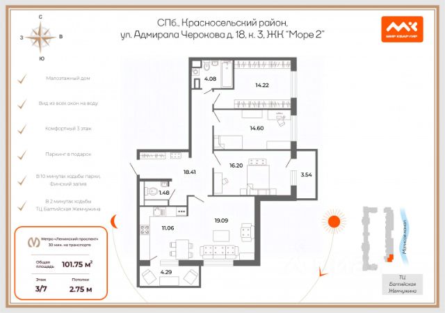 Продаётся 4-комнатная квартира 235, общей площадью 114.61 кв.м., на 12. Дом комфорт-класса, 12 этажей, в окружении леса и малоэтажной застройки. Проект с умным домом. Передача квартир в феврале 2025г. РАСПОЛОЖЕНИЕ И БЛАГОУСТРОЙСТВО Расположение ЖК "ЛесART" порадует любителей чистого воздуха — рядом находятся лесопитомник и Шунгеровский заказник. Особенность комплекса это его ART дворы, которые оформлены по мотивам произведений Василия Кандинского, Пита Мондриана и Пабло Пикассо. Дворы закрыты от машин, что обеспечивает безопасность детей и взрослых. Для семей с детьми особенно удобно наличие детского сада и школы прямо во дворе комплекса. На первом этаже расположены магазины, маркетплейсы, кофейни и всё что необходимо для повседневной жизни. Холлы - это продуманные пространства с колясочными, сквозными проходами и приятной музыкой в лифтах. СИСТЕМА УМНОГО ДОМА В КАЖДОЙ КВАРТИРЕ - Комфорт. Управление освещением, мультимедиа и климат-контролем. - Безопасность. Видеонаблюдение и мониторинг систем безопасности. - Экономия. Контроль систем и оптимизация энергопотребления. - Удобство. Управление с помощью мобильного телефона. ГК "ЕДИНО" Входит в тройку компаний-лидеров региона по потребительским качествам жилых комплексов, объемам ввода жилья и объемам текущего строительства. В цифрах: - 23 года на рынке - Более 50 построенных домов - 60 000+ счастливых обладателей квартир ПРЕИМУЩЕСТВА ПОКУПКИ В ЖК "ЛЕСART": - Сниженная ставка по семейной ипотеке от 5,5%; - Рассрочка без переплаты; - Обмен старой квартиры на новую без комиссии; - Возможность использовать материнский капитал; ЗАПИСЫВАЙТЕ НА ПРОСМОТР! Мы ждем Вас в нашем уютном шоуруме. Вы увидите отделку, дизайнерские решения и познакомитесь со сценариями Умного дома! Такси до офиса продаж и обратно БЕСПЛАТНО! Продается элитная 4-комнатная квартира, жильё рядом с метро Ленинский проспект.