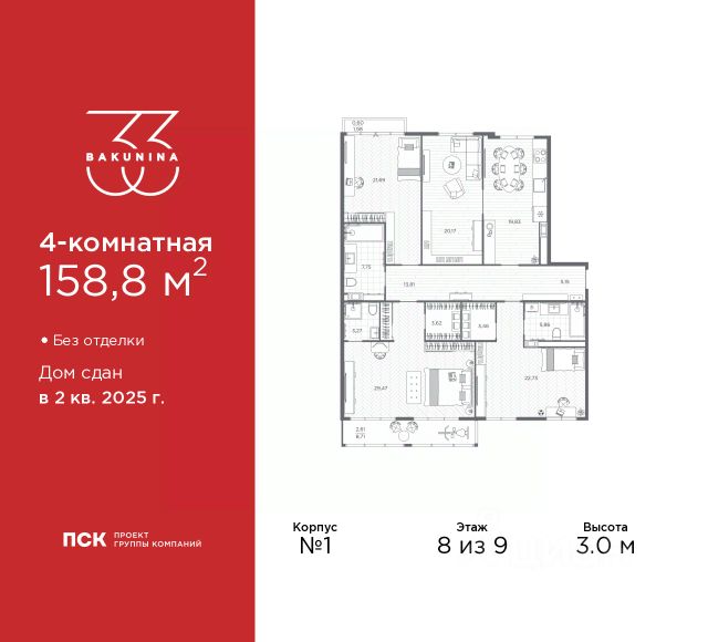 Прямая продажа от застройщика — только в этом месяце. 4-к квартира в клубном доме N8 на 9-м этаже. Общая площадь 142,17. Без отделки. Клубный дом N8 — новый статусный проект высокого бизнес-класса от одного крупнейших федеральных девелоперов ГК ФСК. Это камерное пространство в историческом центре Петербурга на тихой Новгородской улице, скрытое в 5 минутах пешком от Невского проспекта и Ратуши. В облике дома отражены характерные черты петербургской исторической архитектуры: фактурная кирпичная кладка песочных оттенков, декоративные вставки и разностилевое остекление. В клубном доме N8 небольшое количество квартир — всего 281, от трех на этаже. Это позволило создать атмосферу приватности и камерности, а еще — воплотить замысел архитекторов, стремившихся наполнить дом квартирами с панорамными видами на город. От премиальных и экологичных материалов до новейших технологий, от современных инженерных систем до планировок "ручной работы", от впечатляющего парадного холла до уютного внутреннего двора: высокие стандарты девелопера гарантируют, что вы будете приятно удивлены уровнем комфорта и визуальной эстетики. В доме запланированы закрытая территория со смарт-доступом, подземный паркинг с доступом на лифте, зоны отдыха для жильцов. Квартир сдаются без отделки, что позволит собственникам квартир реализовать любые дизайнерские идеи. Продается элитная 4-комнатная квартира, жильё рядом с метро Маяковская.
