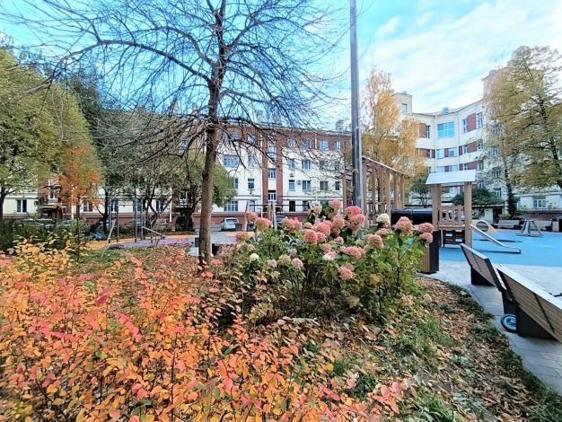 Во дворе дома имеется детский сад, рядом школа. Продуктовый магазин прямо в доме.