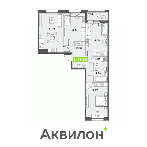 Площадь 99 м2. 2 спальни: 12,3 м2 + 10,6 м2, 1 детская 11,2, м2, 1 гостиная 22 м2, кухня 14,5 м2 гардеробная 3,5 м2, кладовая, 2 санузла: 9,4 м2 + 2 м2