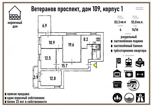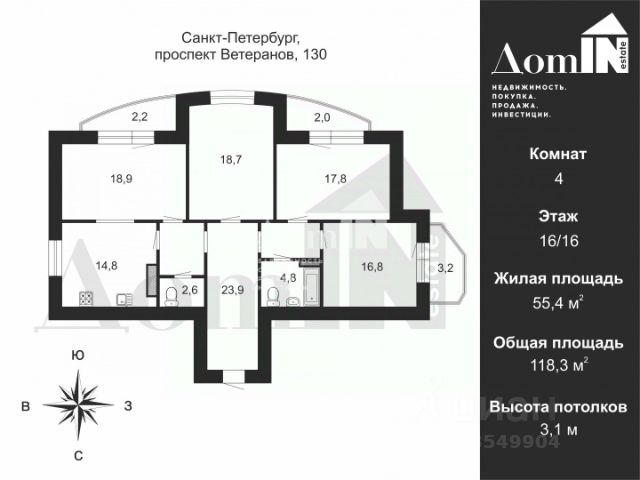 4 - Европланировка квартиры, ЖК" Мое удовольствие", с камином, два санузла раздельных, с ванной, два балкона утепленных, зимнее остекление, три кондиционера, три комнаты изолированные, столовая гостиная просторная с выходом на теплый балкон с видом на Лахта Центр, во двор 3 окна, одно окно в сторону улицы с застекленным Балконом!