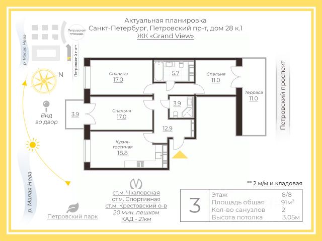 Продается уютная, семейная 4-комнатная квартира от застройщика в жилом комплексе "Amber Club" в уютном Василеостровском районе. До метро можно добраться пешком всего за 15 минут. Уникальная особенность этой квартиры возможность установить настоящий дровяной камин, который создаст атмосферу загородного дома. Мастер-спальня с собственной ванной комнатой. Самое приватное пространство в вашей квартире. Сауна в ванной комнате. Расслабьтесь и восстановите силы, как в СПА-салоне. Открытая терраса! Завтракайте или занимайтесь спортом на свежем воздухе! Уникальная, функциональная европланировка, большая кухня-гостиная 12.62 м², просторная прихожая 17.87 м². Общая площадь квартиры - 113 м², жилая 66.71 м², высота потолка 3.06 м. Квартира продается с отделкой "NORD LINE SILVER ВК" Что особенного в ЖК "Amber Club"? • Уникальные квартиры пентхаусы, квартиры с террасами и каминами • Премиальные виды на Малую Неву и Петровский остров • Шаговая доступность до метро (15 мин. Пешком), удобный выезд на ЗСД прямо с набережной • Amber-сквер с relax-зонами в экостиле и прогулочной аллеей • Единые входные группы со вторым светом, reception и лаунж-зонами 4-комнатная квартира элитные на улице Уральская в Санкт-Петербурге.