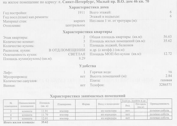 ЕСТЬ СВОЙ АГЕНТ !!! ПОМОЩЬ ,В ПРОДАЖЕ, НЕ НУЖНА!!! Прямая продажа. Полная стоимость в договоре. Собственность с 2014 года, основание Договор Купли Продажи, два взрослых собственника ( мама и взрослый сын), зарегистрированные в квартире только мама - собственник. Год постройки: 1911. Стиль: Модерн. Доходный дом. Архитекторы: Голубин В. П. Трехкомнатная квартира общей площадью 56.7 квадратных метров на втором этаже шестиэтажного кирпичного дома, расположенного в историческом районе Васильевского острова по адресу: Санкт-Петербург, Малый В.О. проспект, 46 / Донская, 1. Жилая площадь составляет 35.6 квадратных метров,комнаты раздельные (11.9+11,7+12). Кухня площадью 8.3 квадратных метра ( душевая на кухне), высота потолков h=2,84 м. Стены: кирпичные.