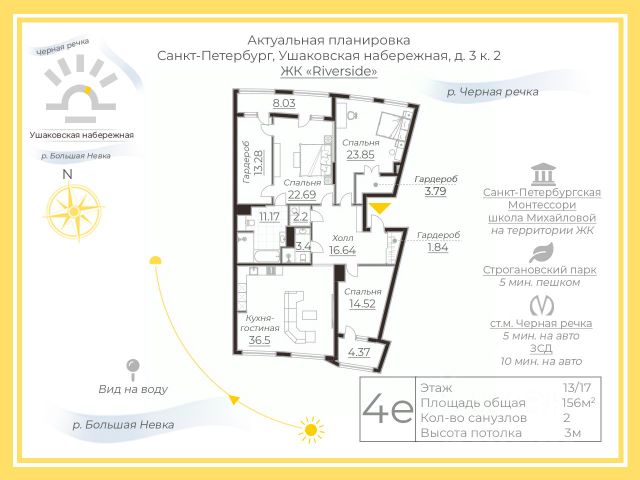 Арт. 131434263 Представляем Вашему вниманию потрясающую квартиру с дизайнерским ремонтом и умопомрачительным видом на воду и панораму городу. Квартира общей площадью (с учетом лоджий) 162 метра с высокими трехметровыми потолками и большими окнами находится на высоком 13 этаже и выходит на 2 стороны: в ухоженный двор с фонтаном и на излучину Невы. С лоджии можно любоваться вечерним солнцем и салютами. В квартире только что закончен ПРЕМИАЛЬНЫЙ ремонт по эксклюзивному дизайн проекту. В отделке использованы дорогостоящие материалы и освещение элитных европейских брендов: штукатурка Marco Polo Luxury, двери Dolce Porto, люстры Bezhko. Квартира укомплектована новой мебелью, изготовленной на заказ и техникой техникой премиум-класса. В шикарных ванных комнатах сантехника Villeroy&Boch, стиральная и сушильная машины Miele. В квартире смонтирован теплый пол, установлена НОВЕЙШАЯ СИСТЕМА КОНДИЦИОНИРОВАНИЯ Mitsubishi. Просторная кухня-гостиная будто сошла со страниц журнала по дизайну интерьера. Сделано грамотное зонирование обеденной зоны и зоны отдыха. Любую хозяйку приятно удивят размеры и качество кухни с выполненной из камня рабочей поверхностью и системами хранения. Вся техника на кухне брендов Miele, electrolux, Liebherr. Поистине функциональная планировка: продумано все для мелочей для комфортной жизни дружной семьи. Отдельного внимания заслуживает стильная мастер-спальня с одиннадцатиметровой ванной комнатой и гардеробной с окном!!!! Детская в пудровых тонах оборудована собственной гардеробной. Два окна обеспечивают обилие света и простор. Также в квартире есть кабинет с лоджией, при желании его можно оборудовать под спальню или комнату для гостей. ЖК бизнес-класса Riverside обладает закрытой от посторонних территорией с чудесными детскими площадками и местами для отдыха, реализована концепция "двор без машин". Управляющая компания оперативно решает все вопрос. На территории комплекса установлено видеонаблюдение, без страха можно отпустить гулять ребенка. В подземный паркинг можно спуститься с этажа. ЕСТЬ МЕСТО В ПАРКИНГЕ ЗА ДОПОЛНИТЕЛЬНУЮ СТОИМОСТЬ. Удачное расположение позволяет быстро добраться до центра города или Крестовского острова с его парками. Документы готовы к сделке, без обременений, подходит под ипотеку.