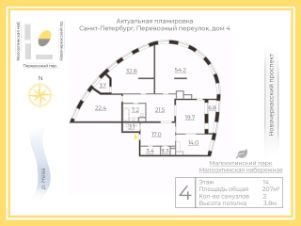 Арт. 133408627 Видовой пентхаус в ЖК "Новый город" с окнами в пол и высотой потолка 3,8 м. Много окон, много света, много воздуха. Вид на Неву, мост Петра Великого, парк, церковь и панораму города. Общеприведенная площадь с учетом площади двух теплых лоджий 206,5 кв.м. В квартире возможно организовать две зоны: гостевую зону с кухней, гостинной, кабинетом/гостевой спальней, гардеробной, гостевым санузелом, холлом и приватную зону с тремя спальнями, двумя санузелами и гардеробными. Есть две теплые лоджии 3,7 кв.м. и 6,8 кв.м. Квартира оборудована приточно-вытяжной вентиляцией. Квартира ориентирована на северо-восток. Квартира требует творческого дизайнерского подхода. Имеет огромный потенциал для реализации дизайнерских идей. ЖК"Новый город" - это жилой комплекс бизнес класса.Он находится рядом с историческим центром города, и в то же время удален от его суеты, шума и пробок на дорогах: до Невского проспекта около 2 км, до Смольного собора 1,5 км, до станции метро "Новочеркасская" 250 м, до КАД 15 минут, до аэропорта 25 минут. Территория комплекса огорожена, охраняется, без автомобильного движения, имеет свою инфраструктуру : несколько отделений банков, ресторан, детский клуб, детский бассейн, медицинские центры, салоны красоты, студия маникюра, спортивный зал, студия йоги, продуктовый магазин, аптека, прачечная, магазин одежды. Из комплекса есть выход в парк, с оборудованными детскими и спортивными площадками. Рядом набережная Невы с причалом. Под всем комплексом расположен 2-х уровневый подземный паркинг, в который можно спустится на лифте от дверей квартиры. Возможно приобрести два места за дополнительную сумму. Достойное предложение по адекватной цене. Это хорошая альтернатива Центральному району и ЖК в Красногвардейском районе. Приглашаю на просмотр. Лучше один раз увидеть, чем сто раз прочитать !