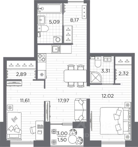 197 166 ₽/м²
