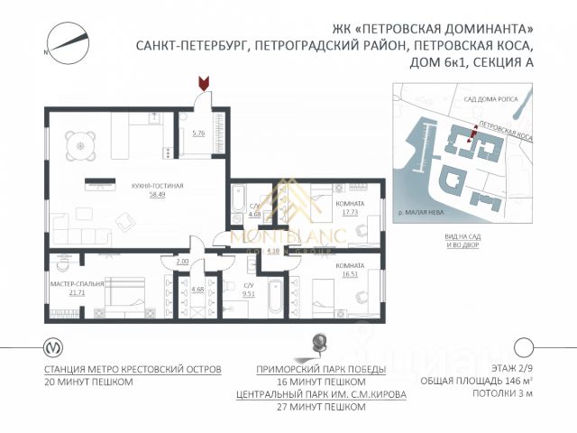 Продаётся 4-комнатная квартира в ЖК "NEVA HAUS" на 2 этаже. Общая площадь составляет 171.50 кв. м. Квартира без отделки. Жилой комплекс "NEVA HAUS" располагается по адресу Санкт-Петербург, Петроградский. NEVA HAUS - элитный жилой комплекс в самой зеленой части Петровского острова, в точке слияния двух рек, напротив Крестовского острова. У жителей появится благоустроенная набережная с пирсом и павильон с необходимыми сервисами и услугами. Потолки до 3,8 м, увеличенные деревянно-алюминиевые окна, современные технические решения, закрытая территория и внутренняя инфраструктура - важные слагаемые качественной жизни в NEVA HAUS. Расположение: • 4 мин на авто до Крестовского острова; • 5 мин на авто до Приморского парка Победы; • 6 мин на авто до станции метро "Крестовский остров"; • 18 мин на авто до ЗСД; • 20 мин на авто до Стрелки В.О. и исторического центра города. NEVA HAUS стал первым элитным жилым комплексом в Санкт-Петербурге, официально получившим статус энергоэффективного, водоэффективного и экологичного объекта по системе GREEN ZOOM. Для удобства жителей, квартира будет подключена к IP-домофонии, на гостевой парковке предусмотрены зарядки для электромобилей. В квартире устроена ниша для размещения кондиционеров, индивидуальные каналы вентиляции, отверстия на фасаде для современных приточно-вытяжных систем, пятиступенчатая очистка воды, коллекторная разводка труб отопления и дерево-алюминиевые окна соответствуют высокому классу жилья. Преимущества: • Высокие потолки, до 3.8м; • Повышенная звукоизоляция между квартирами; • Закрытая охраняемая территория, видеонаблюдение; • Благоустроенная приватная набережная; • Система "Умный дом"; • 5-ти ступенчатая система очистки воды; Успейте приобрести квартиру на выгодных условиях! Чтобы узнать подробности, обращайтесь за консультацией по телефону.