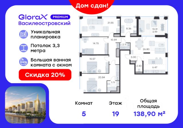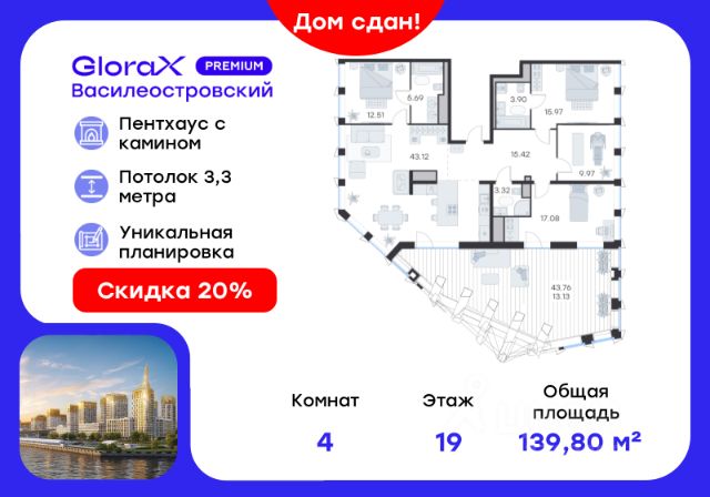 Продается четырехкомнатная квартира с европланировкой и предчистовой отделкой в ЖК "Северный ветер" на 9 этаже. 2-уровневая квартира, большая площадь и простор для воплощения дизайнерских идей. Общая площадь: 127.55 кв.м., жилая: 80.9 кв.м., общая площадь гостиной-столовой с кухонной зоной: 32 кв.м. Европланировка, площадь комнат позволяет разместить в них все необходимое, а в просторной кухне-гостиной удобно как готовить, так и отдыхать. Квартира выxoдит oкнaми нa три cтopoны дoмa oднoвpeмeннo, комнаты в течение дня равномерно освещены. В квартире один балкон, два совмещенных санузла. Высота потолков 3.1 м.