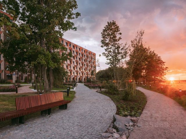 Закрытые дворы комплекса превращены в уютные прогулочные зоны для детей и взрослых. Застройщик выполнил озеленение пространства, согласно авторскому проекту ландшафтного дизайна, проложил велодорожки и тротуары, организовал закрытую набережную, установил многофункциональные спортивно-игровые городки, беседки, лавочки и стойки для велосипедов.